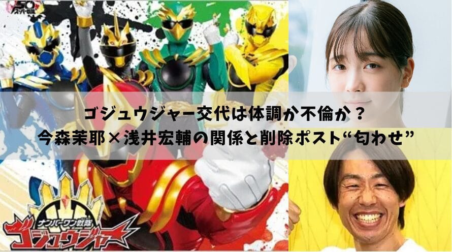 ゴジュウジャーのスーツアクター交代は、公式「体調不良」ですが、文春報道で浅井宏輔氏の不倫が主因と疑われています。今森茉耶(19)×浅井宏輔(41)の関係は、撮影現場から始まり、妻の発覚で降板へ。削除ポスト(ルパパト匂わせ)が疑惑を強め、Xで大炎上。今森さんの降板説と「妹」交代の噂が広がる中、東映の沈黙が問題視されています。子供向け番組の倫理的危機として、50周年の汚点に。真相解明と適切な対応が、番組の未来を左右します。ファンとしては、誠実な説明を待ち望みます